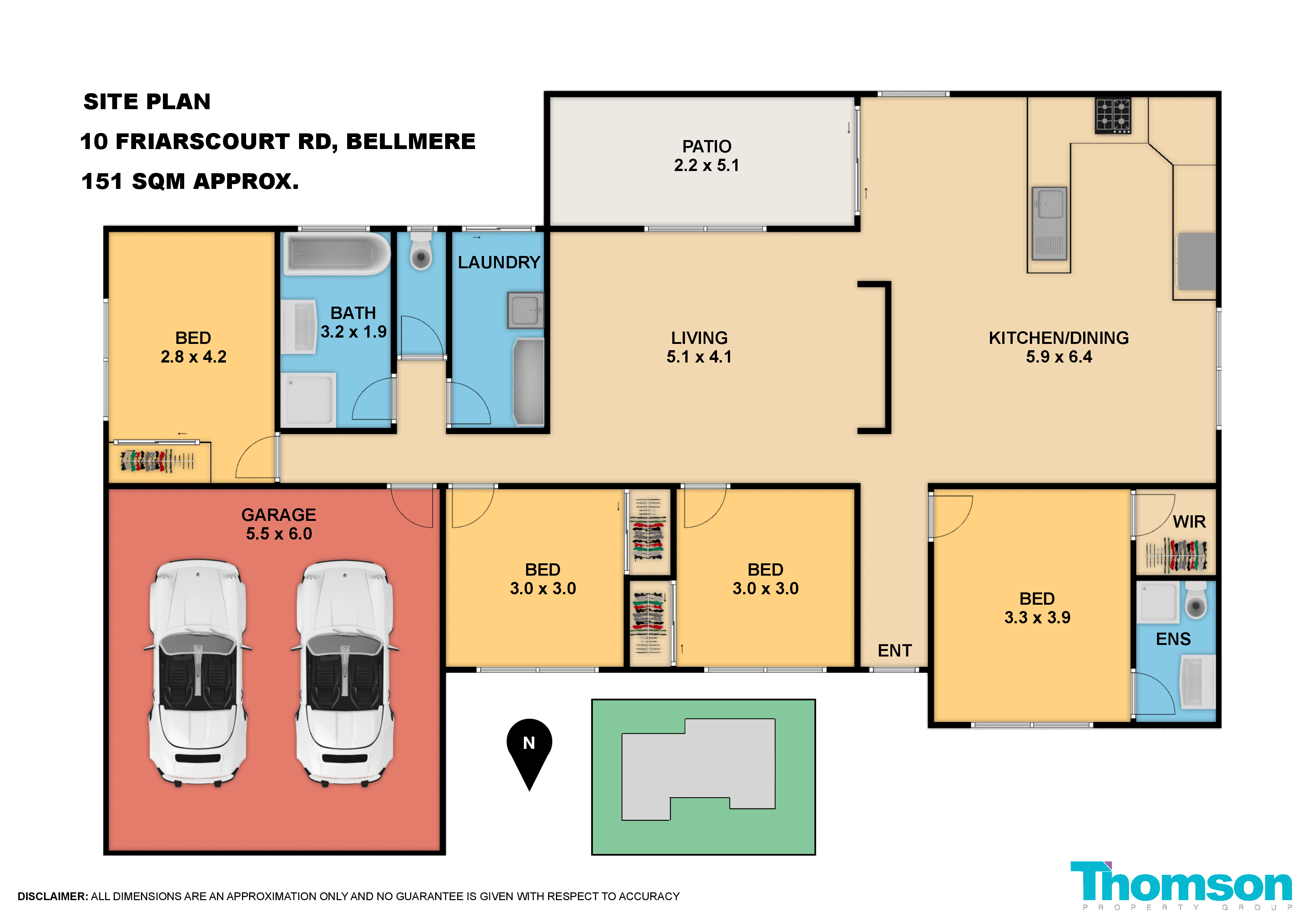 * Separate laundry with built in robe/storage